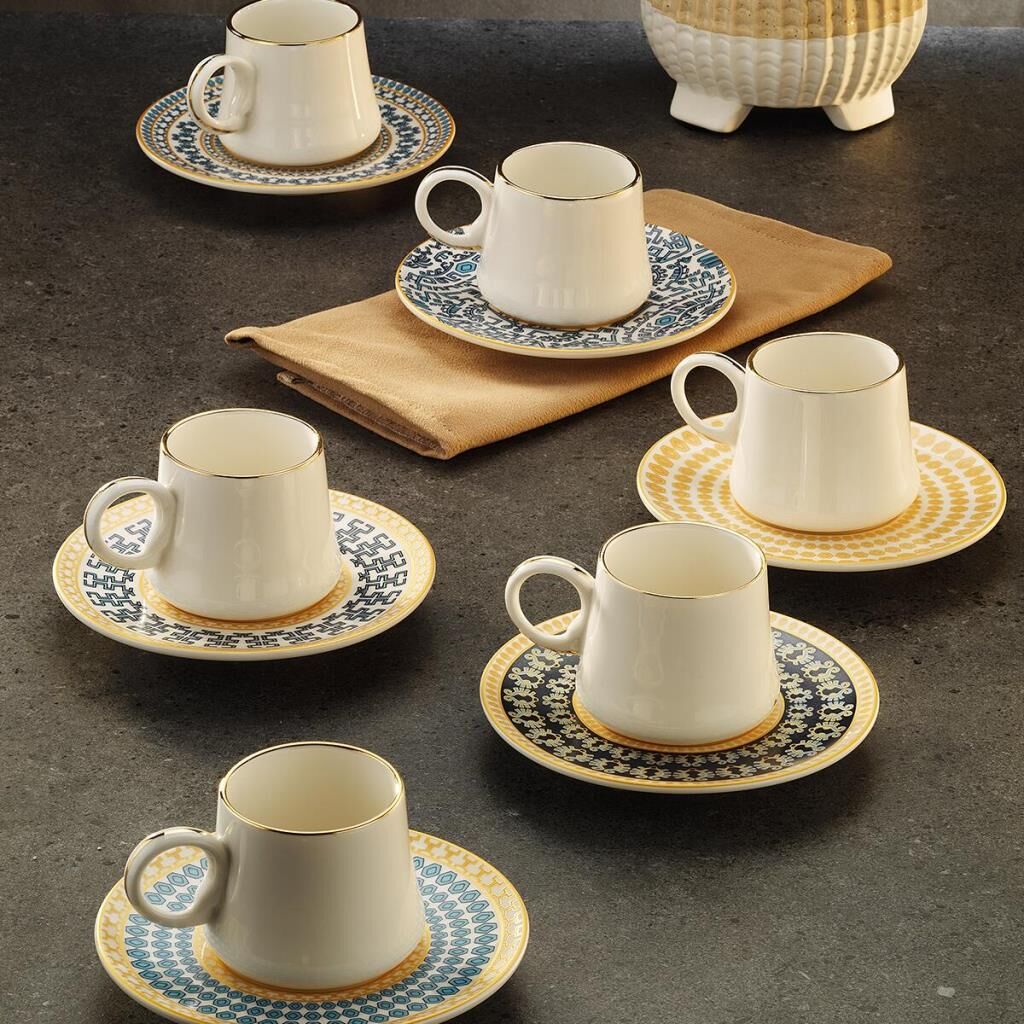 Sandro Moreno 1453 Şangay Double Yüzük Gold 12 Parça 6 Kişilik Kahve Fincan Takımı 120 ml