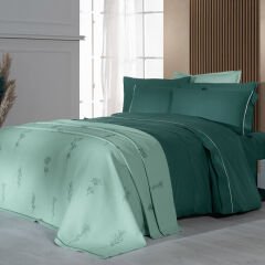 Sarev Eva Eldon Yeşil Tek Kişilik %100 Pamuk Nevresim Takımı ve Pike Seti-Yeşil